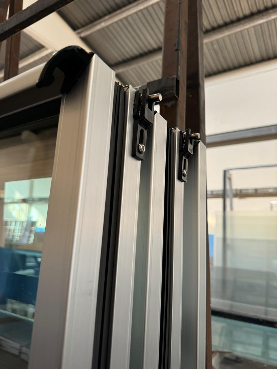 Kapı profiliyle bütünleşik özel kulp yapısı, sade ve modern bir görünüm sunarken yapısal estetiği korur.