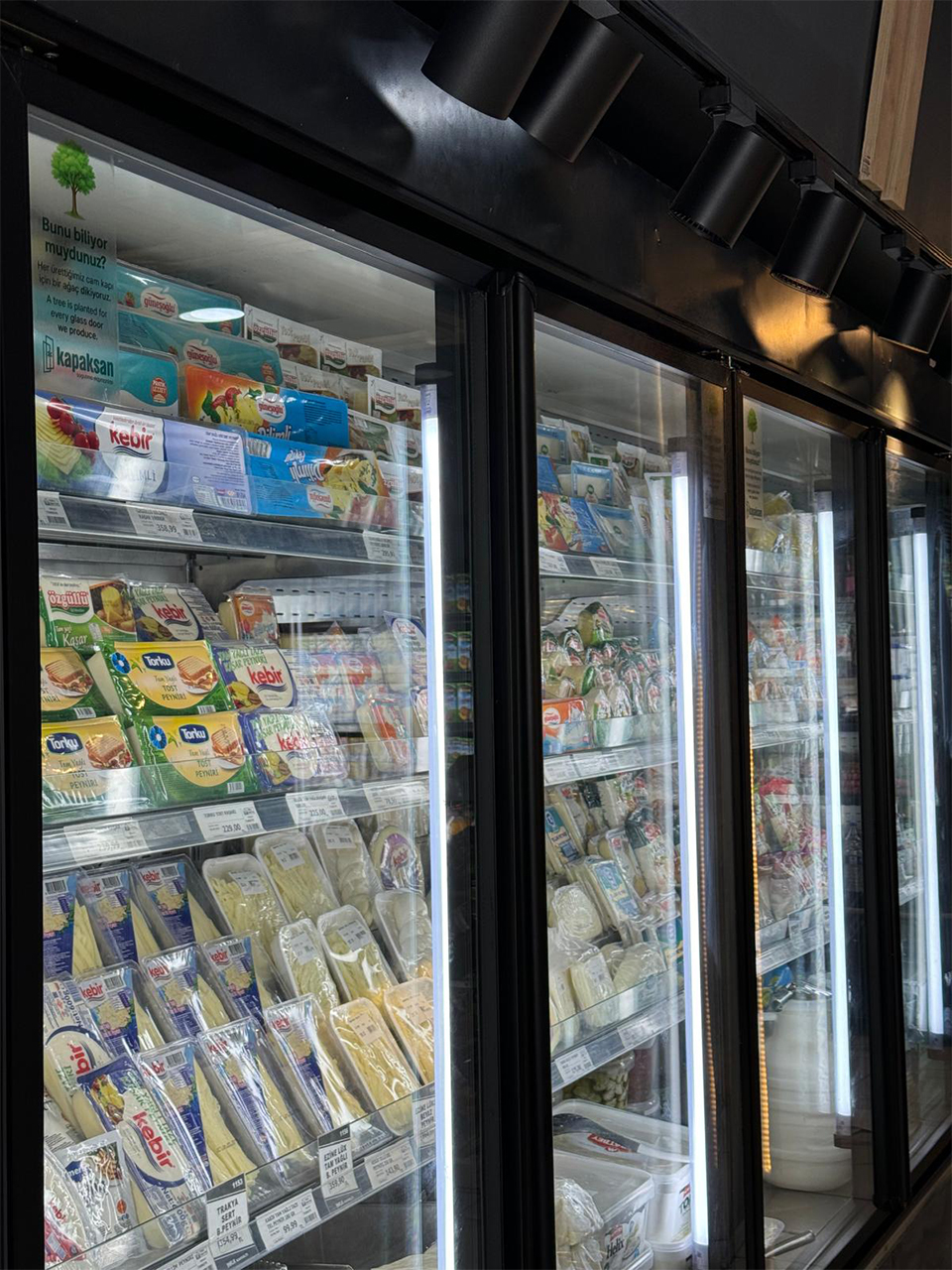 Kapı üzerindeki T-tipi mıknatıslı conta, kapının kendiliğinden kapanmasını sağlayarak iç sıcaklığın sabit kalmasına katkı sunar.